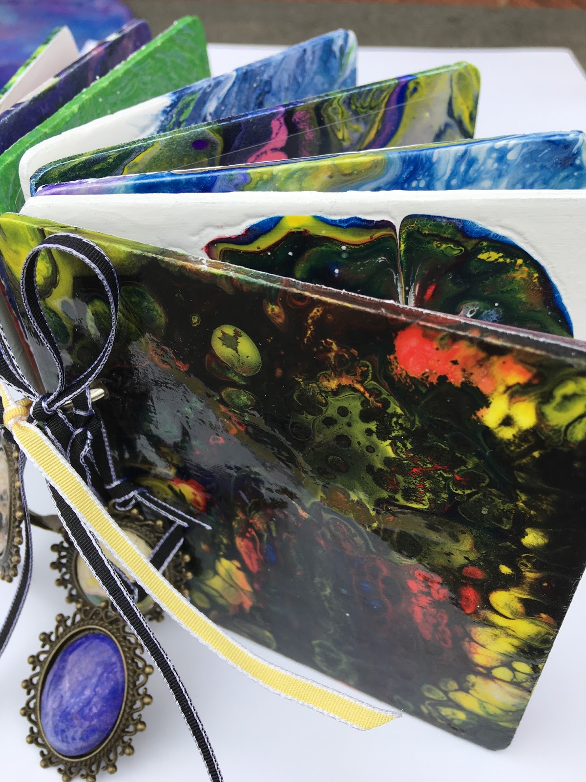 The charms attached to the book were made from the skins left at the bottom of the tray after pours were done.